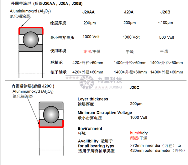 九星電絕緣軸承整理,FAG絕緣軸承后綴代號含義,例如J20AA,J20C,J20A,J20AB